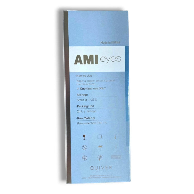 Ami Eyes is a premium skinbooster designed to rejuvenate the delicate skin around the eyes. It uses purified DNA from salmon milt and tissue regeneration materials to hydrate, tighten, and improve skin elasticity without causing bumps or swelling.